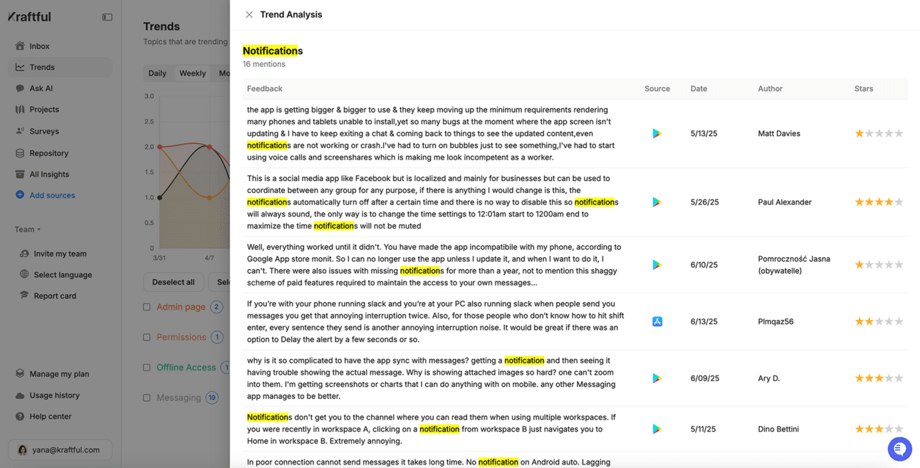 CSV cells are now plotted on the chart based on date: When you upload a CSV file, just map a date column, and your feedback will show up on the Trends chart exactly like feedback from our integrations.