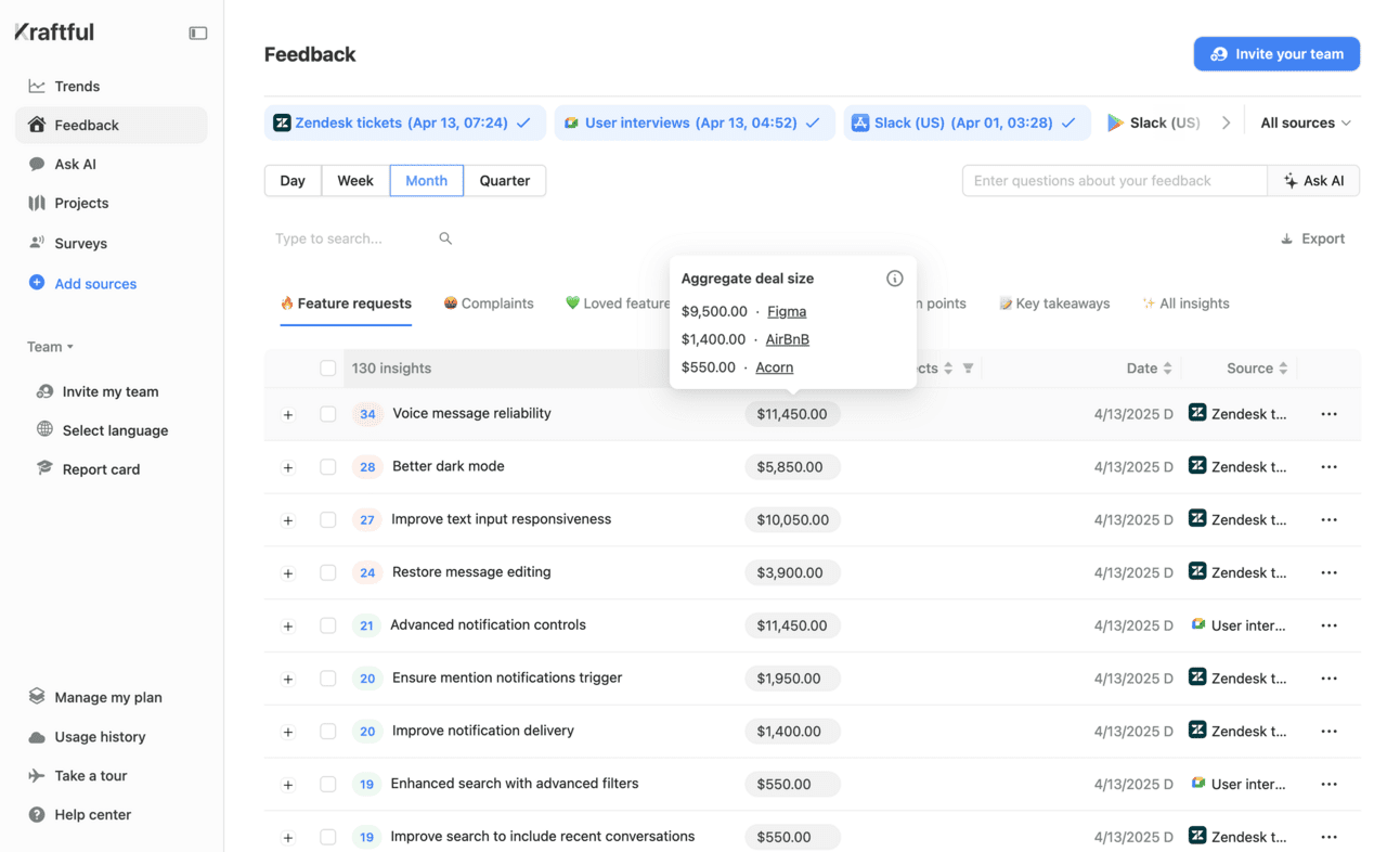 Insights now show deal size tied to each customer request. Sort your backlog by revenue impact, focus on the biggest upside, and watch your CRO do a happy dance.